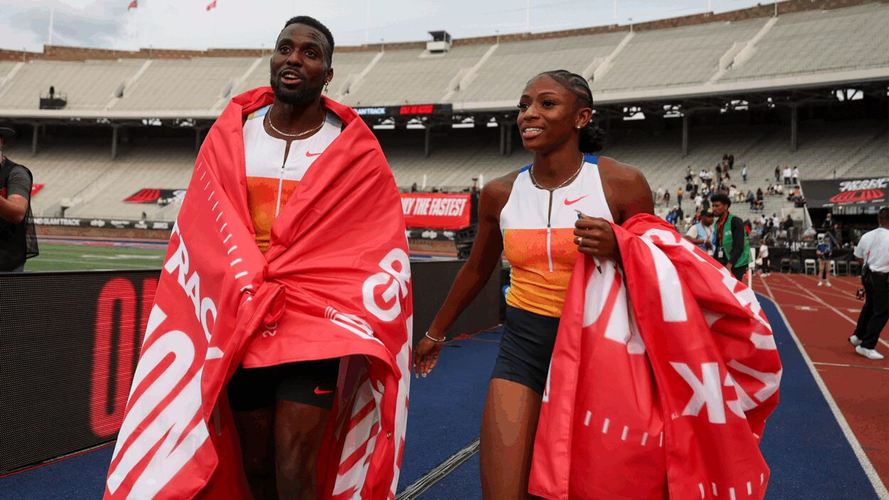 The final day of competition (June 1) at the third Grand Slam Track meet in Philadelphia concluded with explosive performances in the men and women’s 100m, held at Franklin Field at the University of Pennsylvania. Both Melissa Jefferson-Wooden and Kenny Bednarek delivered new personal bests and world leads in their events.